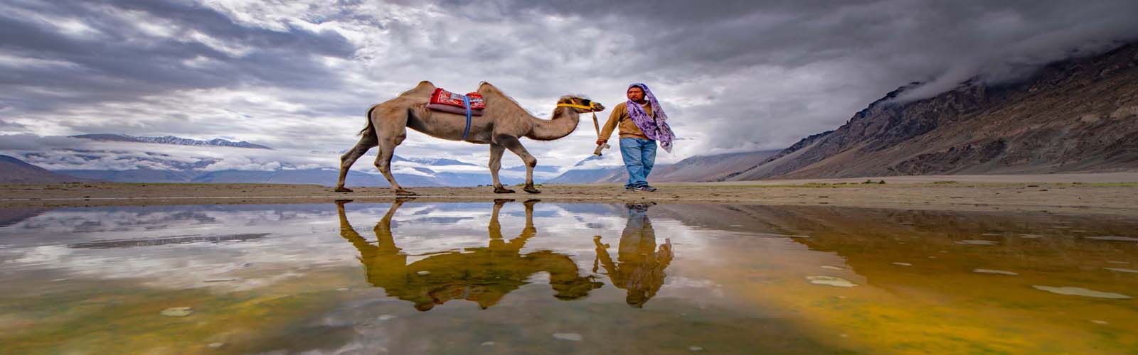 Early morning, leave on road to Nubra Valley via Khardongla Pass which is situated at a height of 18360 ft and considered as the highest motorable pass of the world. In the afternoon, explore Hunder & Diskit monastery and white sand dunes via camel safari. The safari tour is done with double humped camels that are found only in Nubra Valley. Stay overnight at the Deluxe Camp/Hotel..